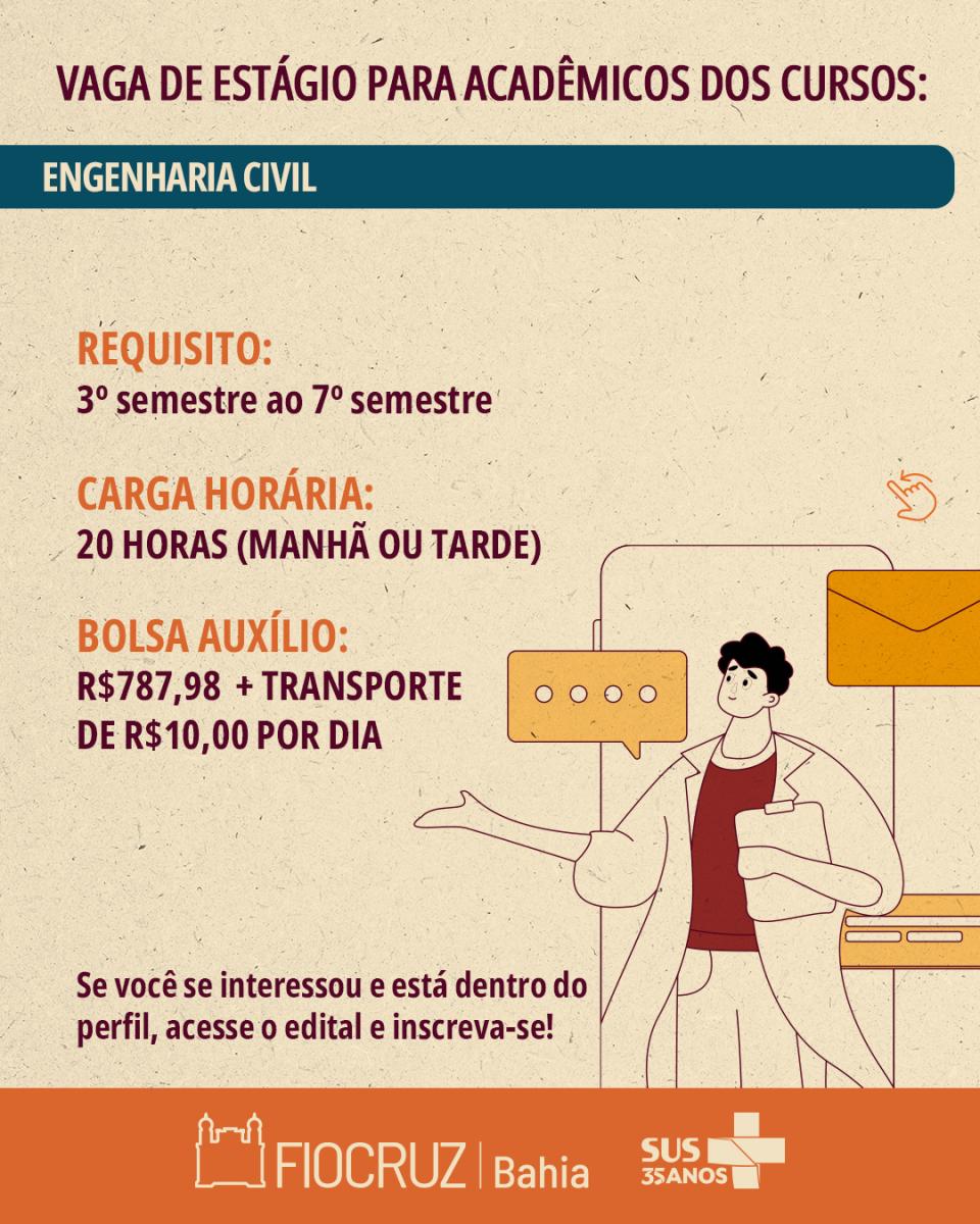 Enviado em sex, 10/10/2025 - 09:25 OBS: Contratos de estágio para o curso de Engenharia Civil somente a partir do 5º Semestre, conforme Resolução 02/2025. Mais informações na Área Poli Estágio em nosso site.