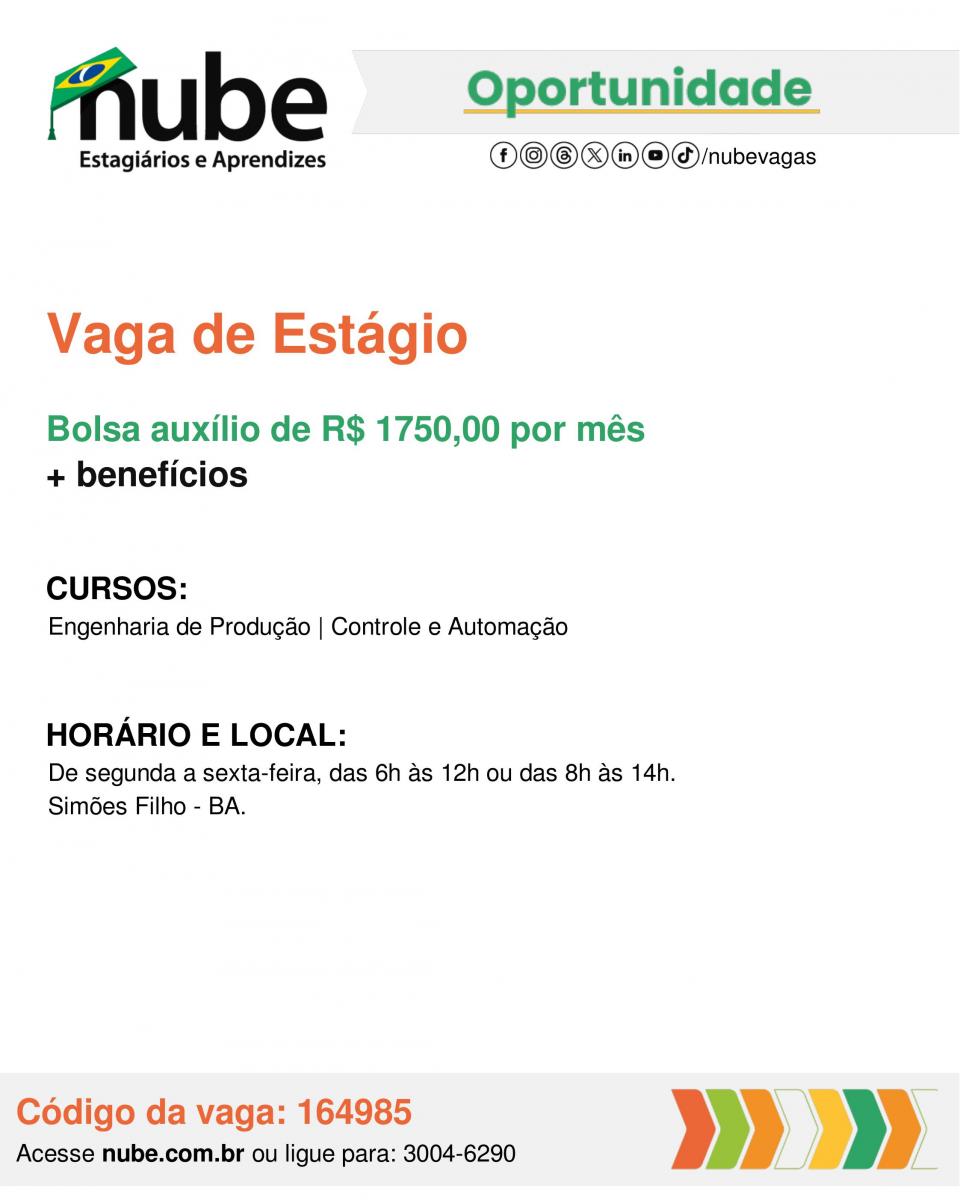 Vaga de Estágio - Engenharia de Produção / Controle e Automação