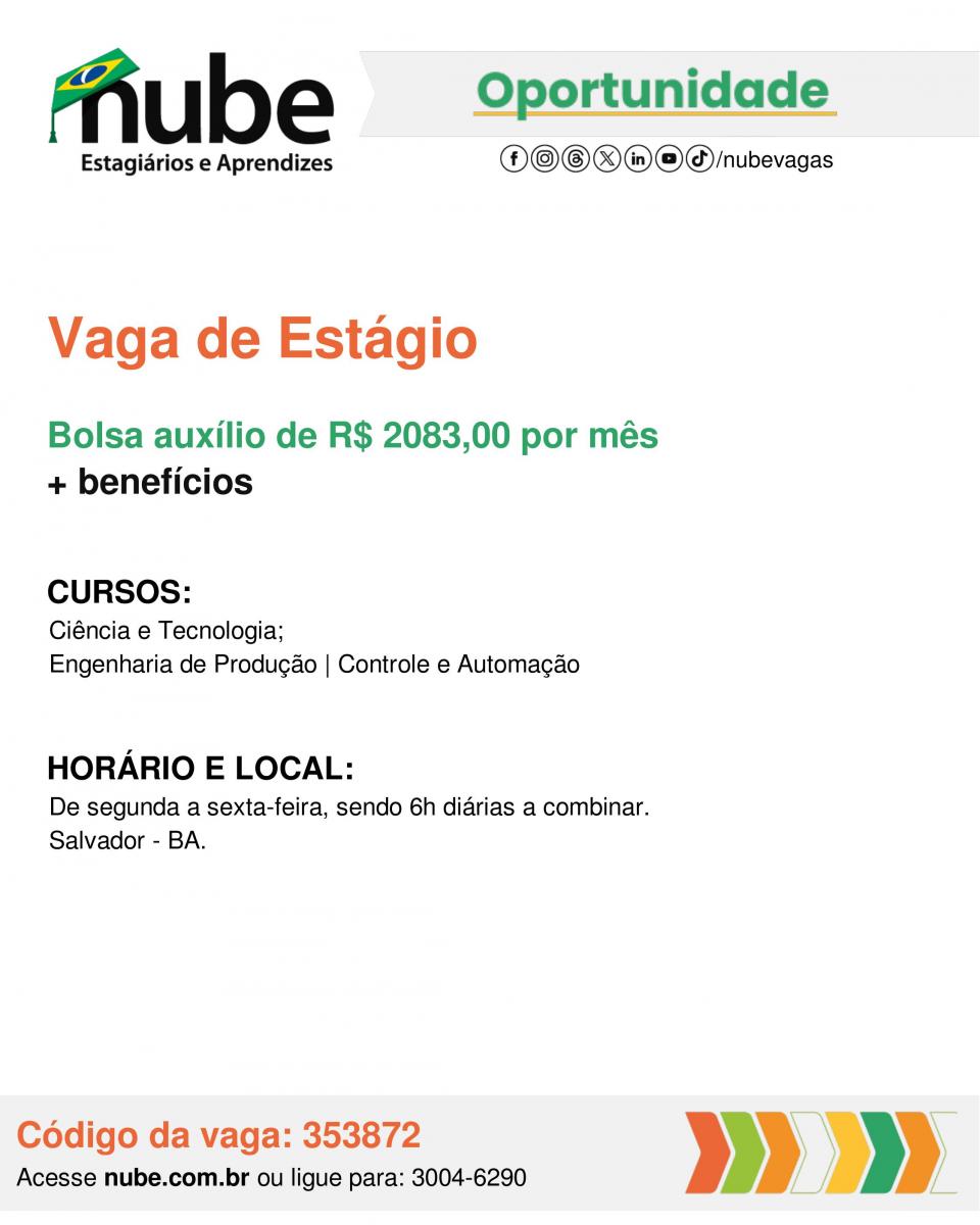 Vaga de Estágio - Engenharia de Produção / Controle e Automação
